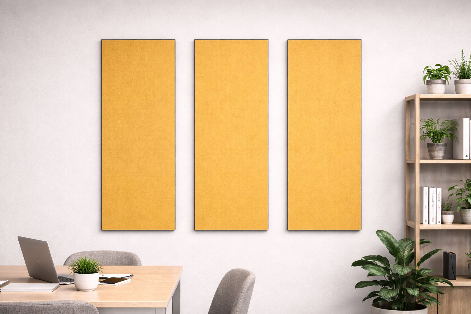 Hvis du er plaget af for meget støj ved skrivebordet, når storrumskontoret er fuld af liv, er det sikkert fordi der er for meget efterklang. Det kommer du let til livs med akustikpaneler på væggene.
