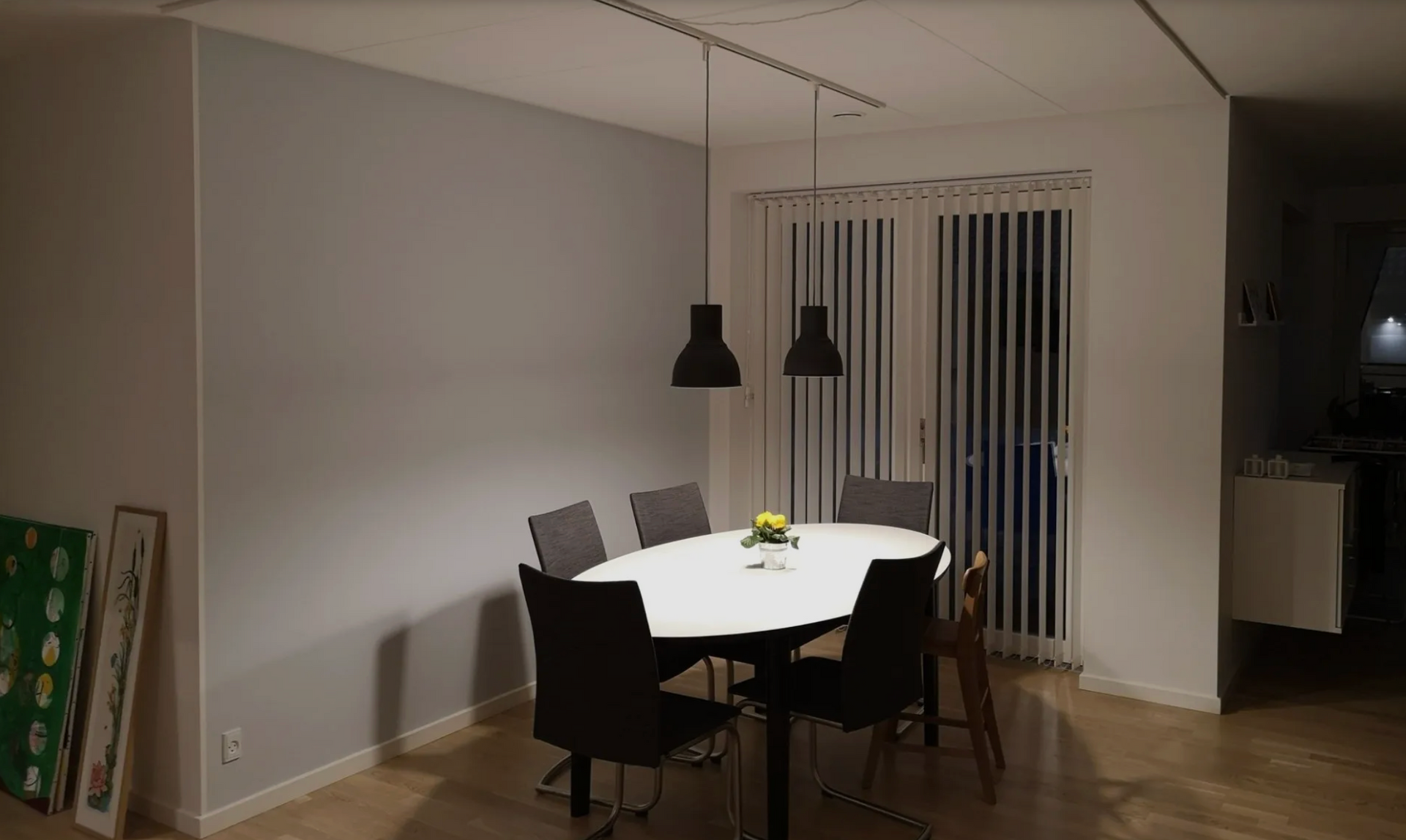 Denne kunde valgte at afhente 30 af vores klassiske hvide akustikplader og klarede selv montagen over spisebordet.